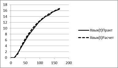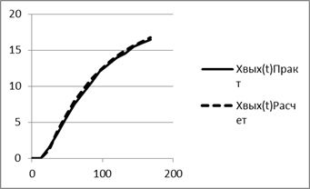 По уравнению (16) и проводится проверка точности совпадения расчётной кривой разгона с экспериментальной, т.е. проверка адекватности математической модели объекта. В уравнении (16) p1
