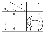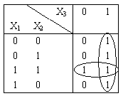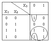Карта Карно представляет собой таблицу для задания логических функций в СДНФ. Например, для функции, заданной табл. 5, карта Карно представлена в табл. 6.