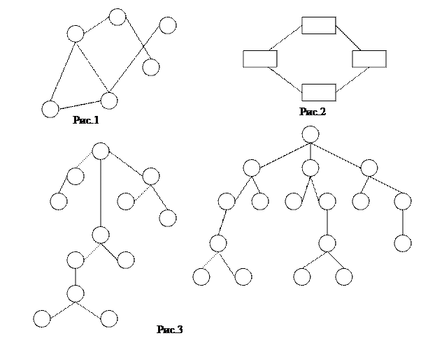 Разнообразные сочетания различных ребер и вершин представляют многообразие возможных графов и их применения. Граф, в котором вершины – прямоугольники и направление ребер не заданы, описывает блок-схему (или структуру) технической системы (рис.2). рисунок 3 - граф-дерево (например описание метода ветвей и границ) - много-уровневая иерархическая система, в которой все вершины распределенные по нескольким уровням. Рисунок 4 – граф с дугами, изображающими связь между вершинами, - сеть.