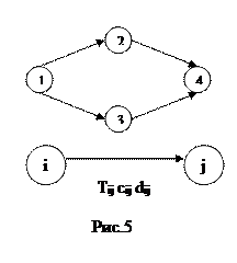 Дугу (Рис.5) обозначают двойной индексацией 1-2; 3-4; и т.д. в общем случае дугу обозначают i-j, где i-номер вершины, из которой исходит дуга. Каждая дуга имеет свою характеристику: tij