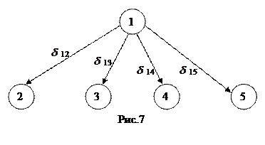. Пусть имеются 5 пунктов, соединенных между собой дорогами так, что из любого пункта можно проехать в любой другой пункт (Рис.6).Известно время перевозки из пункта i в пункт j (табл.1). Требуется найти такой маршрут, начинающийся в данном пункте, проходящий через все пункты и заканчивающийся в пункте выезда, чтобы его продолжительность была наименьшей.