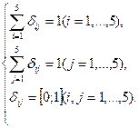 – время переезда из пункта i в пункт j из таблицы 1 видно, что tij