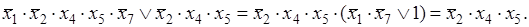 Справедливость формулы (5.3), а также и ее более общего случая, когда в скобках заключена сумма любого количества слагаемых, можно доказать путем установления идентичности условий обращения в 0 или 1 ее левой и правой частей. Условием обращения в нуль левой части выражения (5.3) состоит в том, чтобы нулю равнялся либо один аргумент х3