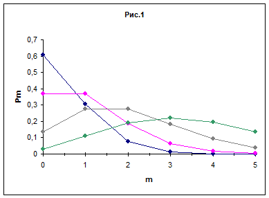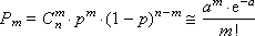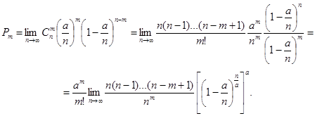 – параметр Пуассона (математическое ожидание), а дисперсия равна математическому ожиданию. Приведем математические выкладки, поясняющие этот переход. Биномиальный закон распределения