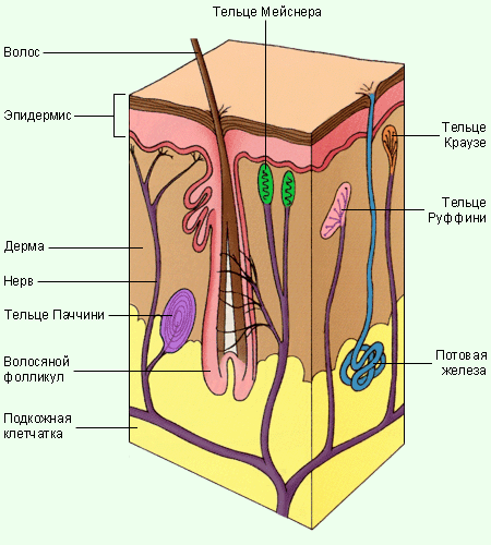 Кожа образует общий покров тела человека, защищающий организм от вредных воздействий извне. Она выполняет также функции органа чувств, при помощи которого воспринимаются осязательные, болевые и температурные раздражения. Кожа участвует в терморегуляции, выполняет дыхательную и выделительную функции.