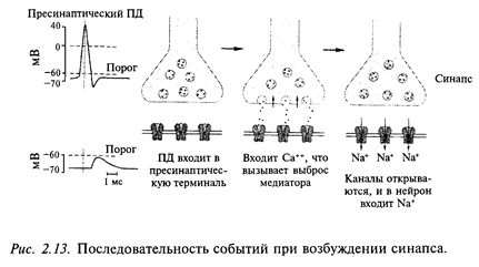 (синапс в переводе с греческого означает контакт); эти синапсы по размерам в сотни раз больше подобных синапсов в головном мозге млекопитающих. Здесь протекают весьма сложные и до конца не изученные процессы. Например, нервный импульс в синапсе приводит к выбросу химического вещества, вследствие действия которого возбуждение передается на другой нейрон. Исследование этих процессов и их понимание лежат в основе целой современной индустрии производства лекарственных средств и других препаратов. Список вопросов, которые может решать современная нейробиология, бесконечно велик. Некоторые примеры мы рассмотрим далее.