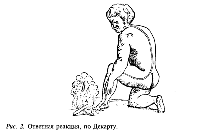 Перелом в понимании функций головного мозга наступил в XVIII столетии, когда стали изготавливать очень сложные часовые механизмы. Например, музыкальные шкатулки исполняли музыку, куклы танцевали, играли на музыкальных инструментах. Все это приводило ученых к мысли, что наш головной мозг чем-то очень похож на такой механизм. Только в XIX веке окончательно было установлено, что функции головного мозга осуществляются по рефлекторному (reflecto-отражаю) принципу. Однако первые представления о рефлекторном принципе действия нервной системы человека были сформулированы еще в XVIII столетии философом и математиком Рене Декартом. Он полагал, что нервы представляют собой полые трубки, по которым от головного мозга, вместилища души, передаются животные духи к мышцам. На рис. 2 видно, что мальчик обжег ногу, и этот стимул запустил всю цепь реакций: вначале «животный дух» направляется к головному мозгу, отражается от него и по соответствующим нервам (трубкам) направляется к мышцам, раздувая их. Здесь без труда можно увидеть простую аналогию с гидравлическими машинами, которые во времена Р. Декарта были вершиной достижения инженерной мысли. Проведение аналогии между действием искусственных механизмов и деятельностью головного мозга - излюбленный прием при описании функций мозга. Например, наш великий соотечественник И. П. Павлов сравнивал функцию коры больших полушарий головного мозга с телефонным узлом, на котором барышня-телефонистка соединяет абонентов между собой. В наше время головной мозг и его деятельность чаще всего сравнивают с мощным компьютером. Однако любая аналогия весьма условна. Не вызывает сомнений, что головной мозг действительно выполняет огромный объем вычислений, но принцип его деятельности отличен от принципов действия компьютера. Но вернемся к вопросу : зачем психологу знать физиологию головного мозга?