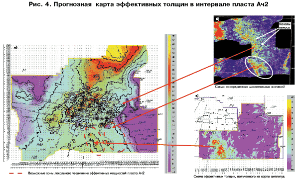 Таким образом, карта эффективных толщин для интервала Ач2, полученная по классической схеме через интервальные времена и общие толщины, была уточнена и отредактирована на локальных участках.