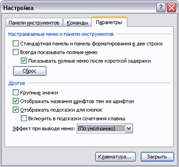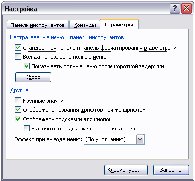 снят. Это позволяет видеть все кнопки панелей инструментов при настройке их и меню.