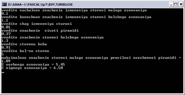 writeln ('vvedite nachalnoe znachenie izmeneniya storoni malogo osnovaniya');