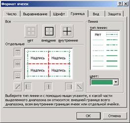 - Границы - обрамление ячеек