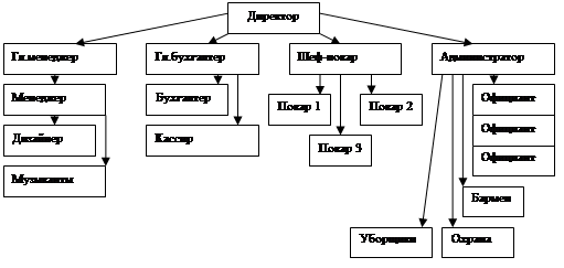 На верхнем уровне находятся – директор, гл.бухгалтер, гл. менеджер, шеф-повар и администратор. Основная их задача – стратегическое планирование деятельности кафе и координация внутреннего управления.