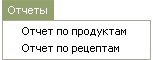 При выборе пункта меню “Отчеты” управление передается в модуль otchet.db, из которого вызываются модули: Pech_spis_rec.db (печать списка рецептов), Pech_spis_prod.db (печать списка продуктов), Pech_menu (печать меню).