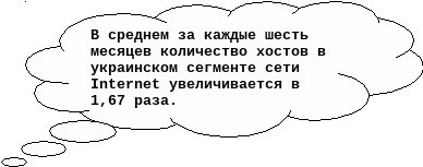 Анализ развития украинского сегмента сети Internet Что касается Украины, то неформально украинский сегмент сети Internet начал свое развитие с конца 1990 года (в это время был зарегистрирован домен SU), а официально домен UA был зарегистрирован в InterNIC 1 декабря 1992 года, о чем была сделана соответствующая запись в базах данных InterNIC и RIPE (см. «Данные о регистрации домена UA») . Фактически с этого момента начинается полноценное становление и развитие украинского сегмента. Кстати, домен RU был зарегистрирован только в апреле 1994 года, что не помешало российскому сегменту успешно развиваться в дальнейшем. Исследовательской компанией Network Wizards приводятся несколько другие данные (таблица 1), которые отличаются от данных RIPE. Разница, очевидно, возникает вследствие использования разных методик оценки. Данные RIPE формируются обычно на основе регистрации. Компания Network Wizard, кроме использования результатов регистрации, применяет еще и специально созданные программы тестирования, что позволяет ей уточнять оценки. Результаты исследований, проведенных этой компанией, показали, что около 25% хостов по тем или иным причинам недоступны для тестирования. Одна из них заключается в том, что организации ограничивают доступ к данным и к их доменной структуре. С недавнего времени компании все больше стали ограничивать доступ к внутренней инфраструктуре, и не только с использованием брандмауэров (или межсетевых экранов). Кроме того, не все хосты, работающие в Internet, имеют доменные имена, а часть хостов функционирует только в течение определенного пользователем промежутка времени. Все это приводит к различию в оценках RIPE и Network Wizards. Поскольку же сказать, какие оценки являются более точными, невозможно, то мы в дальнейшем будем приводить и те, и другие. Таблица 1. Развитие сегментов сети Internet в странах бывшего СССР (по состоянию на январь 1999 г.). | N | Страна | Домен | Количество хостов по данным Network Wizards/RIPE | Количество доменов 2-го уровня | Количество доменов 3-го уровня | | 1 | Россия | ru | 147352 /167767 | 4465 | 80108 | | 2 | Эстония | ee | 21969 /24578 | 1172 | 14898 | | 3 | Россия, страны бывшего СССР | su | 19475 /27416 | 64 | 2174 | | 4 | Украина | ua | 15652 /20608 | 48 | 1539 | | 5 | Латвия | lv | 10345 /15018 | 658 | 6970 | | 6 | Литва | lt | 10147 /10167 | 440 | 8141 | | 7 | Киргизстан | kg | 1907 /1553 | 16 | 1785 | | 8 | Казахстан | kz | 1480 /2141 | 111 | 1302 | | 9 | Беларусь | by | 718 /1029 | 18 | 343 | | 10 | Грузия | ge | 692 /791 | 13 | 464 | | 11 | Молдова | md | 501 /458 | 46 | 461 | | 12 | Армения | am | 385 /757 | 71 | 342 | | 13 | Туркменистан | tm | 263 /1214 | 160 | 188 | | 14 | Узбекистан | uz | 236 /419 | 54 | 118 | | 15 | Азербайджан | az | 163 /433 | 6 | 14 | | 16 | Таджикистан | tj | 74 /165 | 43 | 43 |