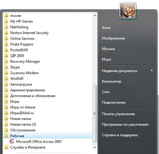 2) Создание группы программ в главном меню по умолчанию