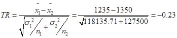 Вычислим t расчетное (TR) :