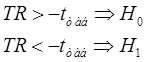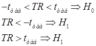 ;t_tabl < tr < t_tabl => h0 иначе h1
