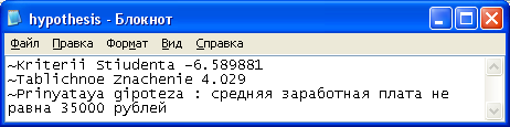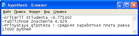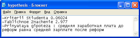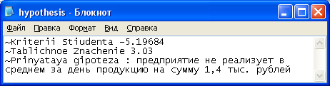 Итогом работы можно считать созданную функциональную модель реализации методов проверки статистических гипотез. Для проверки или отклонения гипотезы используется t-критерий Стьюдента. Созданная функциональная модель и ее программная реализация могут служить органической частью решения более сложных задач.