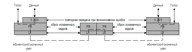 , разработанная, как новая форма коммутации пакетов, как утверждается, обладает всеми четырьмя характеристиками. Эта новая технология носит название FRAME RELAY (FR).