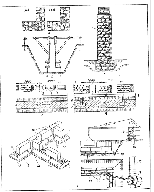 Рис. VI.8. Кладка фундаментов из природного камня. Монтаж фундаментных блоков: