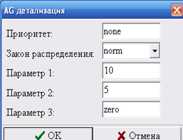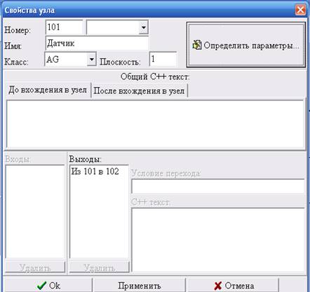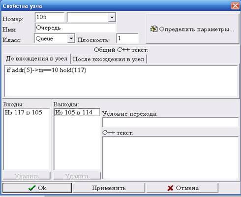 Параметры узлов могут быть заданы константами или переменными пользователя. Во втором случае в момент входа в узел очередной заявки значения этих параметров должны быть определены с помощью операторов языка С++.