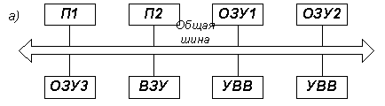 Несомненные достоинства структуры с общей шиной – простота, в том числе изменения комплекса, добавления или изъятия отдельных устройств, а также доступность модулей ОЗУ для всех остальных устройств. Следствием всего этого является достаточно низкая стоимость комплекса.