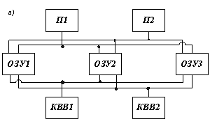 В МПВК с многовходовыми ОЗУ очень просто решается вопрос о выделении каждому процессору своей оперативной памяти, недоступной другим процессорам. Такая организация показана на рис. 4, б.