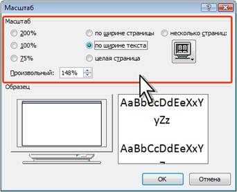 (рис. 34), можно установить требуемый масштаб отображения документа.