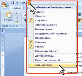 2 В меню выбрать команду Свернуть ленту
