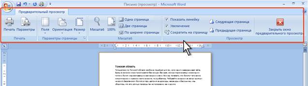 Стандартный набор вкладок заменяется при переходе из режима создания документа в другой режим, например, Предварительный просмотр