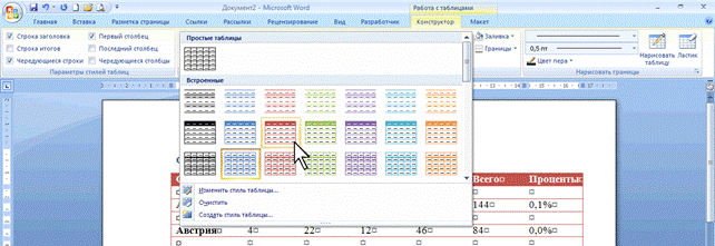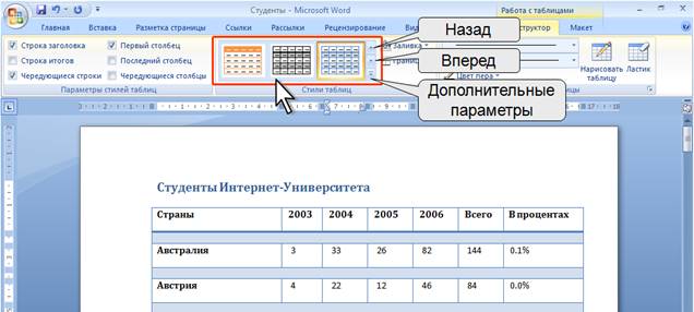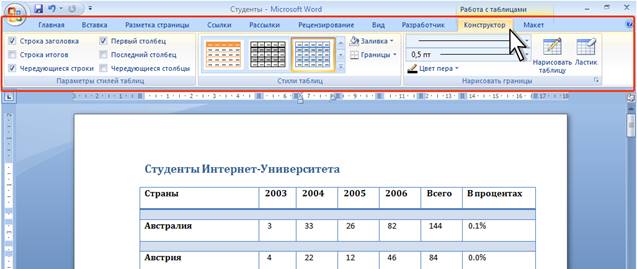 Рис. 6 Контекстные вкладки для работы с таблицами