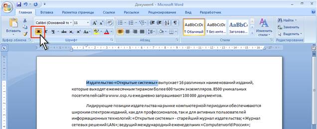 устанавливает полужирное начертание шрифта. Чтобы нажать кнопку, надо щелкнуть по ней мышью (рис. 7).