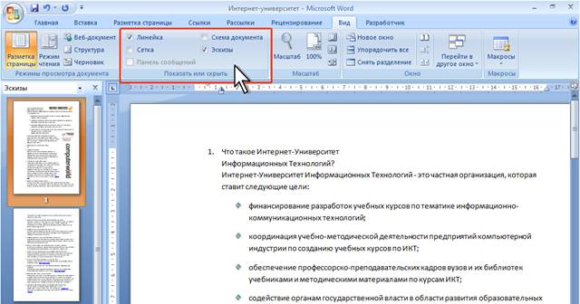 Несколько удобнее переключаться между режимами просмотра документа во вкладке Вид