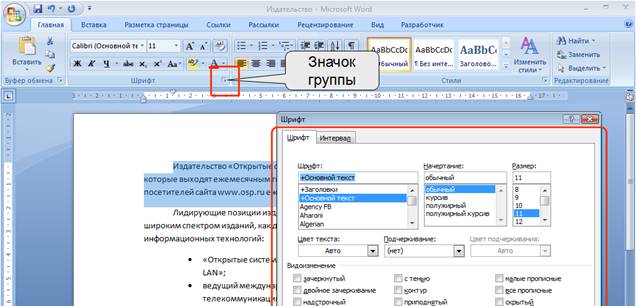 и в группе Шрифт