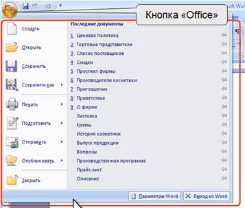 1Интерфейс MicrosoftWord 2007. 2