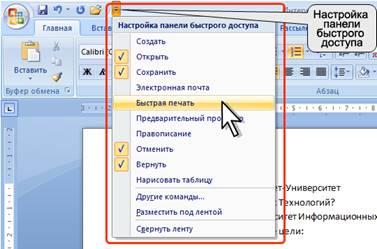 панели быстрого доступа.