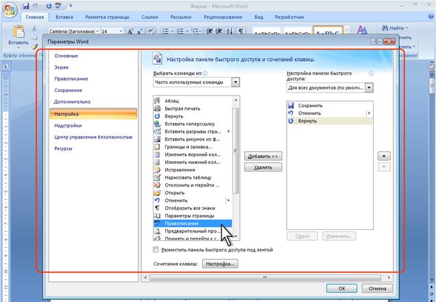 1 Нажать кнопку Настройка панели быстрого доступа