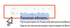 Для использования ленты в свернутом состоянии нужно щелкнуть по названию нужной вкладки, а затем выбрать параметр или команду, которую следует использовать. Например, при свернутой вкладке можно выделить текст в документе Word, щелкнуть вкладку Главная