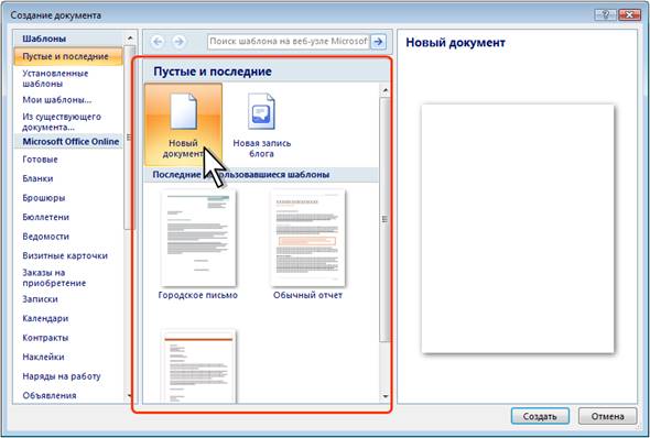 (рис. 23) для создания пустого документа выбрать группу шаблонов Пустые и последние