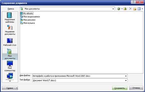 По умолчанию все файлы сохраняются в том же формате, в котором были открыты. Новые документы и файлы Word 2007 сохраняются в формате Документ Word