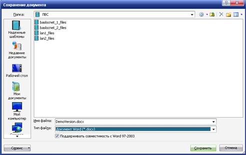 2.4.4Особенности сохранения файлов предыдущих версий Word в формате Word 20072
