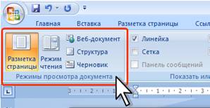 Наиболее часто используемый режим просмотра документа – Разметка страницы