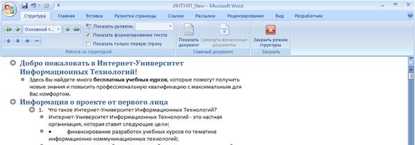 Рис. 31 Отображение документа в режиме Структура