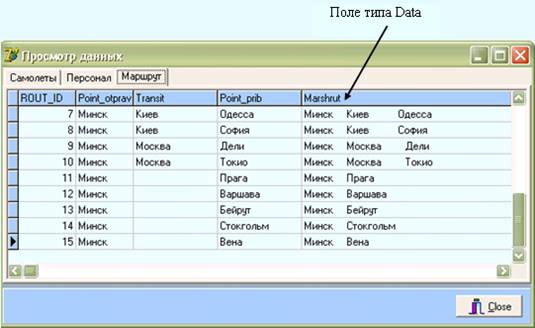 Откройте окно конструктора нового поля (для таблицы Rout). Создайте поле Marshrut типа Data, которое, например, будет содержать текст, составленный из трех подстановочных полей – Point_otprav, Transitи Point_prib.