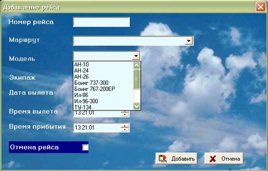 Изменить запись о рейсе: