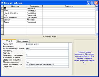 · Имя поля – определяет, как следует обращаться к данным этого поля при автоматических операциях с базой (по умолчанию имена полей используются в качестве заголовков столбцов таблиц).