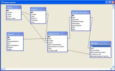 Во второй главе «Проектирование базы данных» рассматривается база данных «Туристическое агентство», также описывается, как она создавалась, начиная с таблиц и заканчивая макросов.