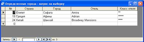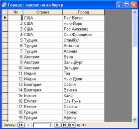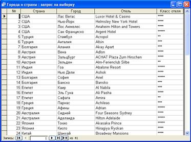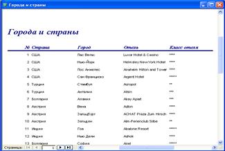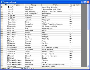 » выводится все страны, города, отель и класс отеля. Эта форма ссылается на таблицу «Город» (см. рис 35).