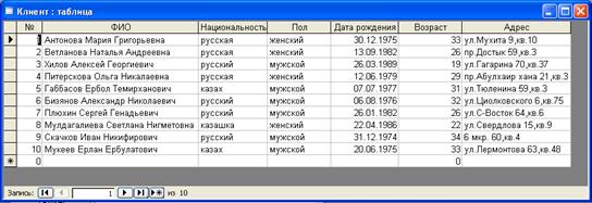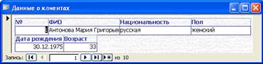 » содержится вся информация о клиентах. Эта форма ссылается на таблицу «Клиент