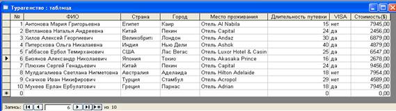 Данная база данных позволяет легко найти необходимого клиента, помочь ему в выборе страны, города. Удобный интерфейс программы, с оной стороны, позволяет легко ориентироваться в программе, не требуя от пользователя каких-либо специальных навыков работы с электронно-вычислительными машинами, с другой стороны представляет пользователю информацию о клиентах. Эта база данных очень полезна, т.к. она помогает нам узнать много нового: поехать в различные страны, побывать в разных городах мира.